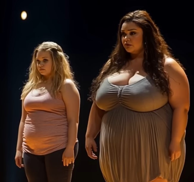 The stage was quiet, the kind of quiet that carries weight — like the air itself was holding its breath. Two women stood side by side, illuminated by a single golden spotlight.