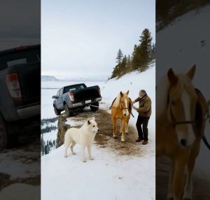 Standing strong against the biting wind was a horse. Horses are symbols of loyalty and courage, but no one expected this animal to respond to the wolf’s signal. Yet, driven by instinct or something greater, the horse approached the edge of the icy lake where danger awaited.