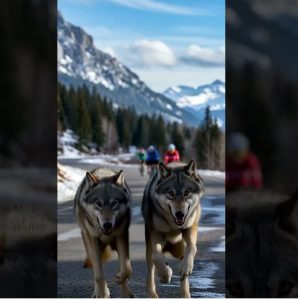 Just as panic set in, something unbelievable happened. A pack of gray wolves appeared from the nearby forest. At first, fear spread among the cyclists — wild wolves, so close, could be a threat. But instead, the wolves acted in a way no one could have ever imagined.